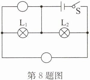 8. 如图所示,请在图中的两个“○”内选填“电压表”和“电流表”的符号,使两灯组成并联电路.