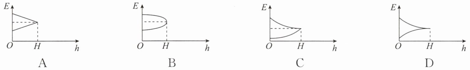 7. 将一物体从地面竖直上抛,物体上抛运动过程中所受空气阻力大小与速度成正比.设物体在地面时的重力势能为零,则物体从抛出到落回原地的过程中,物体的机械能E与物体距离地面高度h的关系,如图所示中描述正确的是(