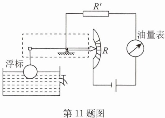 11. 如图所示是一种自动测定油箱内油面高度的装置.