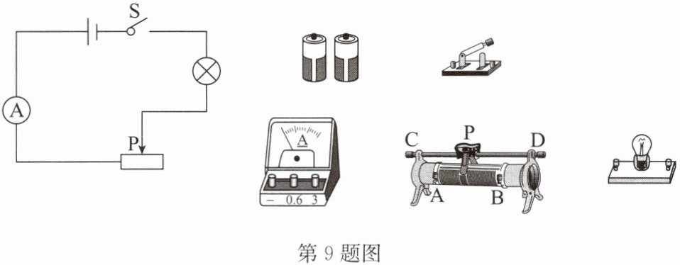 9. 某班同学做“用滑动变阻器改变电流”的实验,电路如图所示.