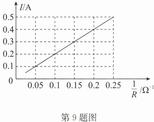 9. 小明探究“通过导体的电流与电阻的关系”,根据实验的数据绘出了I - 1/R图像,如图所示. 分析图像可知,下列说法不正确的是 (