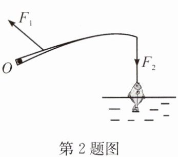 2. 如图所示为钓鱼竿钓鱼的示意图,$O$为支点,请画出$F_{1}$、$F_{2}的力臂l_{1}和l_{2}$.
