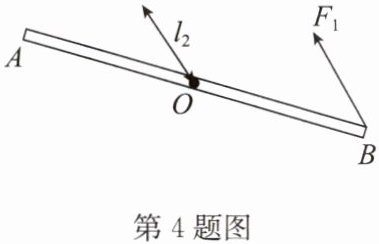 4. 如图所示,杠杆$AB的支点位于O$点,在力$F_{1}(F_{1}\lt F_{2})$的作用下处于平衡状态,$l_{2}是F_{2}$的力臂,在图中画出$F_{1}的力臂l_{1}和力F_{2}$.