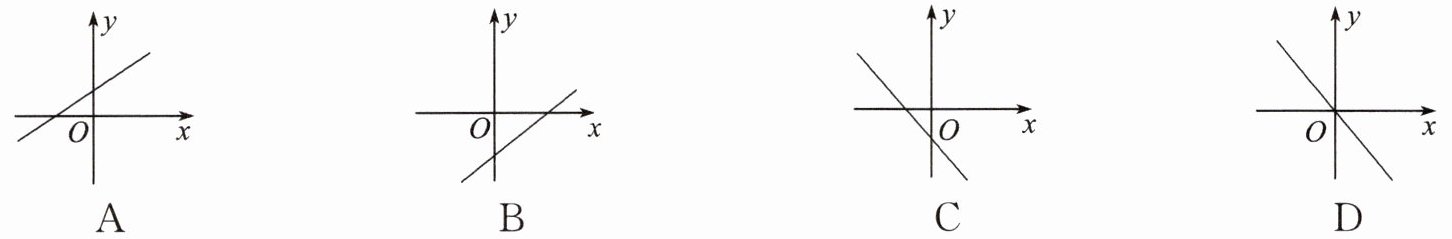 8.若关于x的一元二次方程$x^{2}-2x + kb + 1 = 0$有两个不相等的实数根,则一次函数$y = kx + b$的大致图像可能是 (