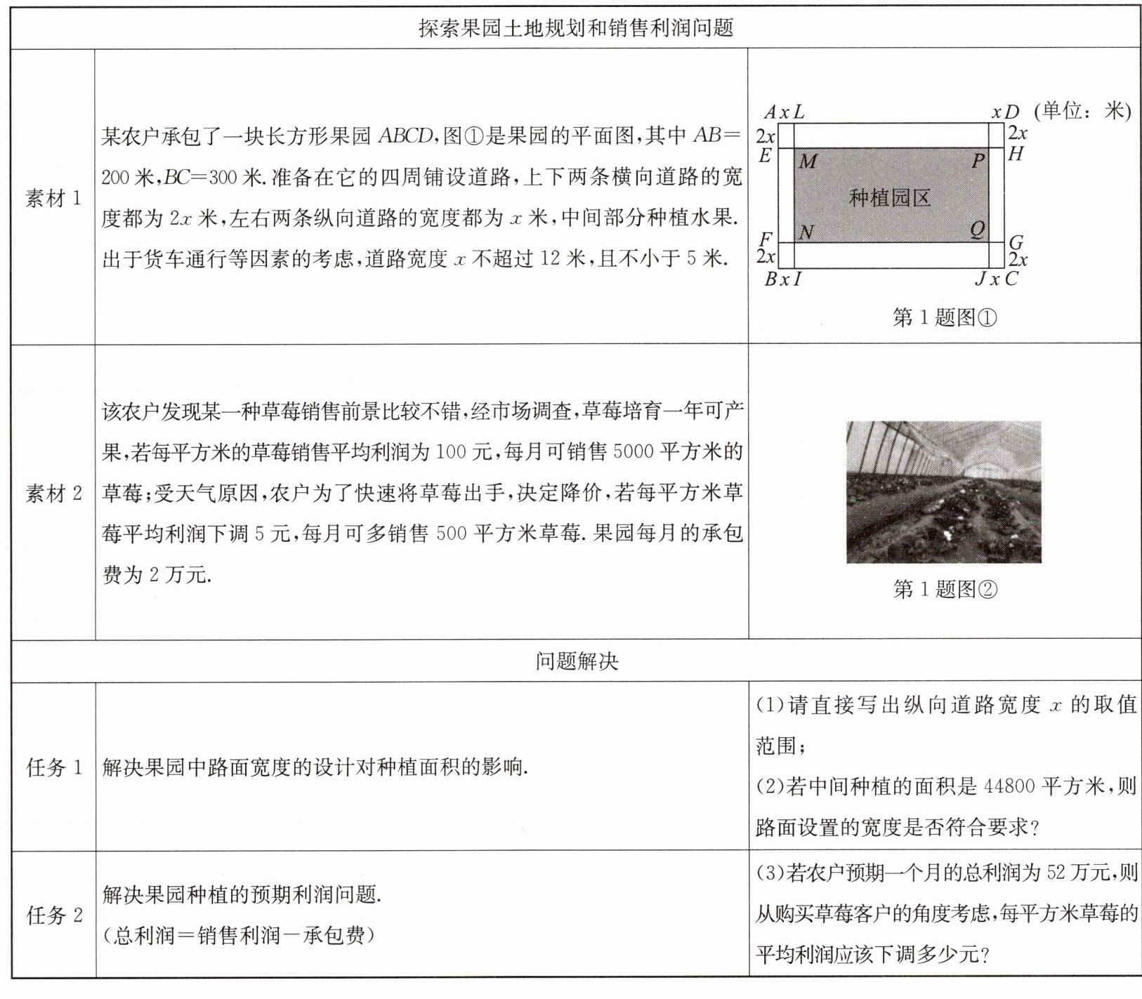 (3) 设每平方米草莓平均利润下调 $ y $ 元, 则每平方米草莓平均利润为 $ ( 100 - y ) $ 元, 每月可售出 $ 5000 + \frac { y } { 5 } × 500 = ( 5000 + 100 y ) $ 平方米草莓,
