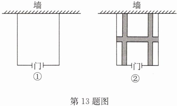 (1)根据学校的要求,在与墙平行的一面开一个2m宽的门(如图①),那么这个矩形车棚相邻两边长分别为多少米?