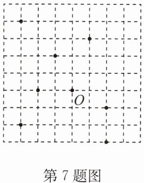 7. (2024·连云区期中)如图,在网格(每个小正方形的边长均为 1)中选取 8 个格点(网格线的交点称为格点),如果以点 O 为圆心,r 为半径画圆,选取的格点中除点 O 外恰好有 4 个在圆内,则 r 的取值范围为 (