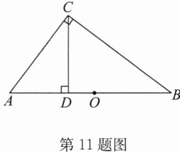 11. 如图,在$\triangle ABC$中,$∠ACB= 90^{\circ },AB= 10,BC= 8,CD⊥AB$于点 D,O 为 AB 的中点.