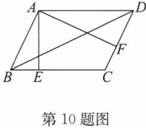 10. 如图,在$□ ABCD$中,$∠BAD$为钝角,且$AE⊥BC$于点 E,$AF⊥CD$于点 F,连接 BD.