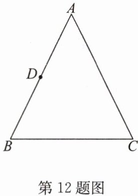12. 如图,在$\triangle ABC$中,$AB= AC= 2\sqrt {5},BC= 4$,D 是 AB 的中点,若以点 D 为圆心,r 为半径作$\odot D$,使点 B 在$\odot D$内,点 C 在$\odot D$外,试求 r 的取值范围.