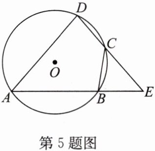 5. 如图,四边形 $ ABCD $ 是 $ ⊙O $ 的内接四边形,延长 $ DC $,$ AB $ 相交于点 $ E $,若 $ BC= BE $,求证:$ △ADE $ 是等腰三角形.