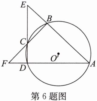 6. (2024·济宁)如图,分别延长圆内接四边形 $ ABCD $ 的两组对边,延长线相交于点 $ E $,$ F $. 若 $ ∠E= 54^{\circ}41' $,$ ∠F= 43^{\circ}19' $,则 $ ∠A $ 的度数为 (