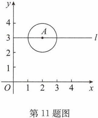 11.如图,O为坐标原点,点A的坐标为$(2,3),\odot A$的半径为1,过点A作直线l平行于x轴,点P在直线l上运动.