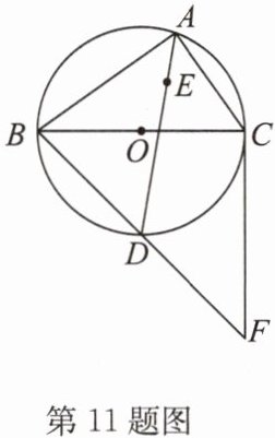 11. 如图,$\odot O是\triangle ABC$的外接圆,$BC为\odot O$的直径,点$E为\triangle ABC$的内心,连接$AE并延长交\odot O于点D$,连接$BD并延长至点F$,使得$DF = BD$,连接$CF$. 求证:直线$CF为\odot O$的切线.