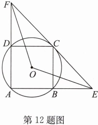 12.(2023·鼓楼区二模)如图,四边形ABCD是$\odot O$的内接矩形,点E,F分别在射线AB,AD上,$OE= OF$,且点C,E,F在一条直线上,EF与$\odot O$相切于点C.