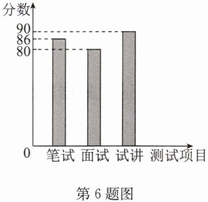 6. (2024·德阳)某校拟招聘一名优秀的数学教师,设置了笔试、面试、试讲三项水平测试,综合成绩按照笔试占30%,面试占30%,试讲占40%进行计算,小徐的三项测试成绩如图所示,则她的综合成绩为______分.