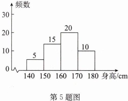 5. 某校测量了九年级(1)班学生的身高(精确到1cm),得到如图所示的频数分布直方图(每组含最小值,不含最大值),根据图中信息,计算该班学生的平均身高(每组数据取组中值).
