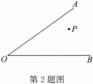 2. 如图,$P为\angle AOB$内一定点,小明从点$P$出发,先到达$OA边上的某一位置M$,再到达$OB边上的某一位置N$,最后返回点$P$。设计一条路线,使小明走的总路径最短,在图中确定此时点$M和点N$的位置,并说明理由。
