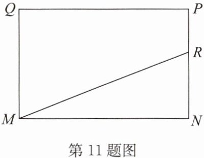11. 如图,在长方形$ M N P Q $中,$ M N = 6 $,$ P N = 4 $,动点$ R 从点 N $出发,沿$ N \to P \to Q \to M 的方向运动至点 M $停止.设点$ R 运动的路程为 x $,$ \triangle M N R 的面积为 y $.