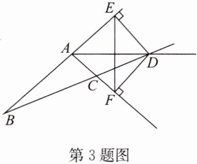 3. 如图,在$\triangle ABC$中,$AB \neq AC$,$\triangle ABC的外角\angle EAC的平分线交BC的延长线于点D$,$DE \perp BA$,交$BA的延长线于点E$,$DF \perp AC$,交$AC的延长线于点F$,连接$EF$. 求证:$EF \perp AD$.