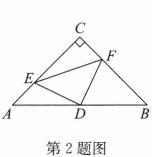2. 如图,在$△ABC$中,已知$∠C = 90^{\circ}$,$AC = BC = 4$,$D是AB$的中点,点$E$,$F分别在AC$,$BC$边上运动(点$E不与点A$,$C$重合),且保持$AE = CF$,连接$DE$,$DF$,$EF$。在此运动过程中,有下列结论:①$△DFE$是等腰直角三角形;②四边形$CEDF$的面积是定值;③$AE + BF = EF$;④$△DFE$面积的最小值为 2。其中正确的结论有______。(填序号)