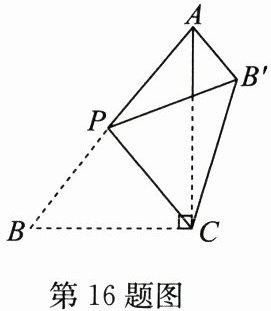 16. 如图,在$\triangle ABC$中,$\angle ACB = 90^{\circ}$,$AB = 5$,$BC = 3$,$P是AB$边上的动点(不与点$B$重合),将$\triangle BCP沿CP$所在的直线翻折,得到$\triangle B'CP$,连接$B'A$,则$B'A$长度的最小值是______