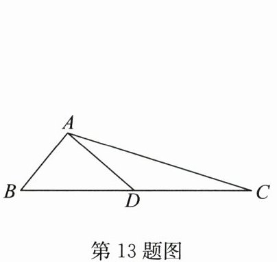 13. 如图,在$\triangle ABC$中,$AB = 5$,$AC = 13$,$BC边上的中线AD = 6$,则$\triangle ABD$的面积是