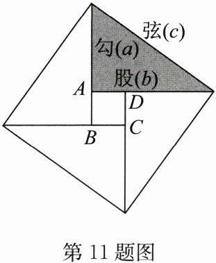 11. 公元3世纪初,中国古代数学家赵爽注《周髀算经》时,创造了“赵爽弦图”。如图,设勾$a = 6$,弦$c = 10$,则小正方形$ABCD$的面积是