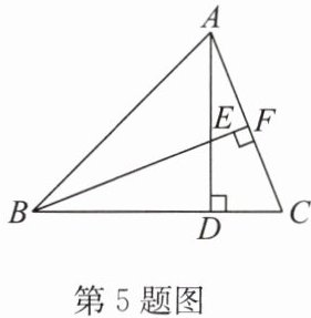 5. 如图,在$\triangle ABC$中,过点$A作AD⊥BC于点D$,过点$B作BF⊥AC于点F$,交$AD于点E$,已知$AC= BE$,$BD= 5$,$CD= 2$,求$AE$的长.