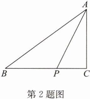 2. 如图,在$\triangle ABC$中,$AB = 10\mathrm{cm}$,$BC = 8\mathrm{cm}$,$AC = 6\mathrm{cm}$,动点$P从点B$出发,以$2\mathrm{cm}/\mathrm{s}的速度沿BC运动至点C$,设运动时间为$t\mathrm{s}$. 当点$P恰好运动到\angle BAC$的平分线上时,求$t$的值.