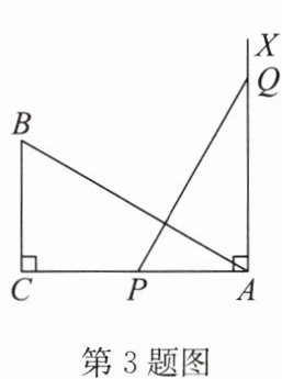 3. (2024·赣榆区期中)如图,$AC\perp BC于点C$,$AC = 4$,$BC = 2$,射线$AX\perp AC于点A$,点$P在线段AC$上移动,点$Q在射线AX上随着点P$移动,且始终保持$PQ = AB$,当$AP = $