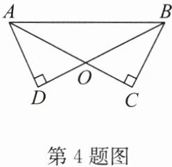 4. (2024·盱眙县期末)如图,$AC与BD相交于点O$,$AC\perp BC$,$AD\perp BD$,垂足分别为$C$,$D$,且$AC = BD$.求证:$OA = OB$.