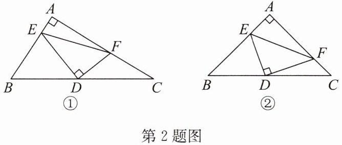 2. 在$Rt△ABC$中,$∠BAC= 90^{\circ }$,D 是斜边 BC 的中点,E,F 分别是 AB,AC 边上的点,且$DE⊥DF$,连接 EF.