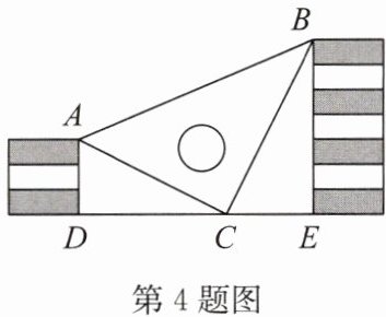 4.(2024·盱眙县期中)如图,小虎用10块高度都是3 cm的相同长方体小木块,垒了两堵与地面垂直的木墙,木墙之间刚好可以放进一个等腰直角三角尺($AC= BC,∠ACB= 90^{\circ }$),点C在DE上,点A和B分别与木墙的顶端重合,则两堵木墙之间的距离DE的长度为 (