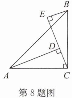 8.(2024·东海县期末)如图,$∠ACB= 90^{\circ },AC= BC,AD⊥CE,BE⊥CE$,垂足分别是D,E,$AD= 3,BE= 1$,则DE的长是______