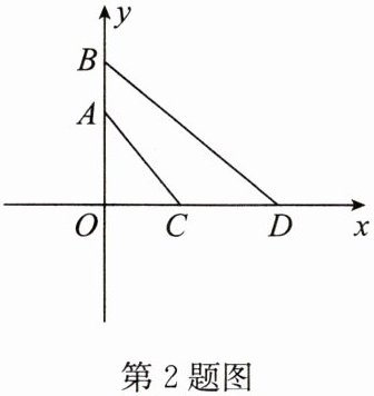 2. 如图,在平面直角坐标系中,长为2的线段$CD$(点$D在点C$的右侧)在$x$轴上移动,$A(0,2)$,$B(0,3)$,连接$AC$,$BD$,则$AC+BD$的最小值为______。