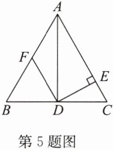 5. 如图,$ A D $ 是 $ \triangle A B C $ 的中线,$ D E \perp A C $ 于点 $ E $,$ D F $ 是 $ \triangle A B D $ 的中线,且 $ C E = 2 $,$ D E = 4 $,$ A E = 8 $。