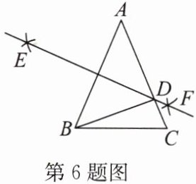 6. (2024·眉山)如图, 在 $ \triangle ABC $ 中, $ AB = AC = 6 $, $ BC = 4 $, 分别以点 $ A $, $ B $ 为圆心, 大于 $ \frac{1}{2}AB $ 的长为半径作弧, 两弧交于点 $ E $, $ F $, 过点 $ E $, $ F $ 作直线交 $ AC $ 于点 $ D $, 连接 $ BD $, 则 $ \triangle BCD $ 的周长为 (