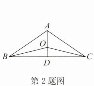 2. (2024·张家港期中)如图, 在 $ \triangle ABC $ 中, $ AB = AC $, $ D $ 是 $ BC $ 上的一点, $ O $ 是 $ AD $ 上一点, 且 $ OB = OC $. 若 $ BC = 4 $, 则 $ BD $ 的长为 (