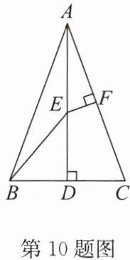 10. (2024·灌南县期末)如图,在$\triangle ABC$中,$AB= AC,\angle BAC= 40^{\circ }$,$AD是BC$边上的高。线段$AC的垂直平分线交AD于点E$,交$AC于点F$,连接$BE$。