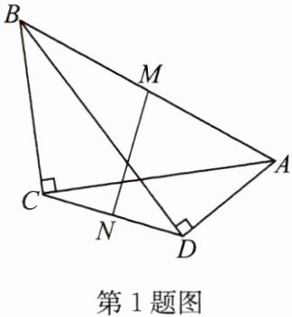 1. 如图,$∠ACB= ∠ADB= 90^{\circ }$,M,N分别为AB,CD的中点. 求证:$MN⊥CD.$