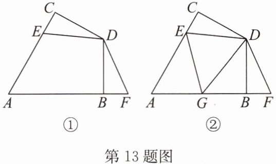 13.(20分)(2024·海州区期中)在四边形ABDC中,AC= AB,DC= DB,∠CAB= 60°,∠CDB= 120°,E是AC上一点,F是AB延长线上一点,且CE= BF.