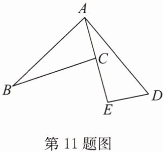 11. 如图,$A,C,E$三点在同一条直线上,且$\triangle ABC\cong \triangle DAE$.