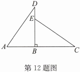 12. 如图,$DB\perp AC$,垂足为$B$,$E是BD$上一点,且$\triangle ABD\cong \triangle EBC$.
