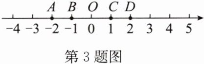 3. (2024·清江浦区期末)如图,数轴上的点A,B,O,C,D分别表示数-2,-1,0,1,2,则表示数$1-\sqrt{3}$的点P应落在(