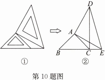 10. (2024·盱眙县期末)两个大小不同的等腰直角三角尺如图①所示放置,图②是由它抽象出的几何图形,点B,C,E在同一条直线上,连接DC.