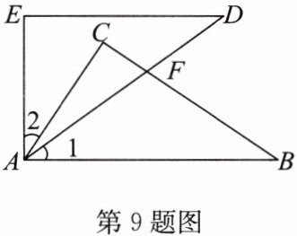 9. (2024·洪泽区期末)如图,在△ABC和△ADE中,AB= AD,AC= AE,∠1= ∠2,AD,BC相交于点F.