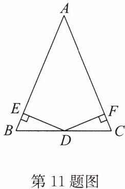 11. (2024·涟水县期末)如图,在$△ABC$中,$AB= AC= 13,BC= 10$,D是BC的中点,$DE⊥AB,DF⊥AC$,垂足分别是E,F.求DE的长.