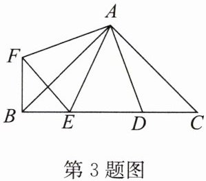 3. 如图,$\angle BAC = \angle DAF = 90^{\circ}$,$AB = AC$,$AD = AF$,$D$,$E为BC$边上的两点,且$\angle DAE = 45^{\circ}$,连接$EF$,$BF$,则下列结论中正确的是______。(填序号)