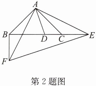 2. 如图,在$Rt\triangle ABC$中,$AB = AC$,$\angle BAC = 90^{\circ}$,点$D$,$E分别在边BC$及其延长线上,$BD^{2} + CE^{2} = DE^{2}$,$F为\triangle ABC$外一点,且$FB\perp BC$,$FA\perp AE$。下列结论:①$AF = AE$;②$\angle DAE = 45^{\circ}$;③$S_{\triangle ADE} = \frac{1}{4}AD\cdot EF$;④$CE^{2} + BE^{2} = 2AE^{2}$。其中正确结论的个数是(